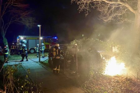 Die meisten Feuerwehrleute in Norden verzichten in dieser besonderen Nacht auf Alkohol und halten sich einsatzbereit. Ab 0.26 Uhr ging es dann aber Schlag auf Schlag. Insgesamt drei Löschfahrzeuge waren fortan eineinhalb Stunden im Einsatz. Nacheinander wurden fünf Kleinbrände im Norder Innenstadtbereich und Norddeich gemeldet. Es brannten mehrere Mülltonnen und Müllcontainer sowie zusammengetragene Abfälle von Feuerwerkskörpern. Die Feuerwehrleute rückten von einer Einsatzstelle zur nächsten aus, teilweise sogar parallel zu unterschiedlichen Orten. Größere Sachschäden entstanden nicht.