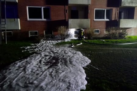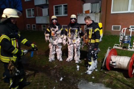 Am frühen Samstagmorgen wurde die Freiwillige Feuerwehr Norden zunächst zu einem gemeldeten Zimmerbrand in einem Mehrfamilienhaus im Warfenweg alarmiert. Vor Ort stellte sich die Lage allerdings wesentlich dramatischer dar. Mehrere Personen standen auf Balkonen und an Fenstern und riefen um Hilfe. Der Einsatzleiter veranlasste sofort eine Alarmstufenerhöhung. Der erste Trupp der unter schwerem Atemschutz zur Erkundung vorging konnte einen Kellerbrand lokalisieren, ein Betreten des Kellerraumes und des Treppenhauses war zunächst aufgrund der enormen Wärmestrahlung nicht weiter möglich. Die Brandbekämpfung wurde von außen mit Einsatz von Schaummittel durch die Kellerfenster eingeleitet. Parallel dazu wurde eine Menschenrettung über tragbare Leitern und über die beiden Drehleitern der Norder Wehr eingeleitet. Hierbei zeigte sich der enorme Einsatzwert der zweiten „alten“ Drehleiter die bislang noch nicht ausgemustert wurde und hier ebenfalls zum Einsatz kam. Die Drehleiter der Freiwilligen Feuerwehr Aurich wurde ebenfalls zu Unterstützung alarmiert, brauchte aber vor Ort dann nicht mehr eingesetzt werden. Insgesamt wurden 30 Personen gerettet und durch den Rettungsdienst des Landkreises Aurich mit leitenden Notarzt gesichtet. Sieben Personen kamen ins Krankenhaus, 23 Personen wurden durch das Deutsche Rote Kreuz zunächst vor Ort in einem beheizten Zelt versorgt. Mitarbeiter der Stadt Norden kümmerten sich um die Unterbringung der Personen. Mehrere Tiere, darunter drei Hunde und ein Kaninchen wurden ebenfalls in Sicherheit gebracht. Das Gebäude wurde von der Polizei beschlagnahmt, Ermittlungen zur Brandursache wurden aufgenommen. Nach ca. vier Stunden konnte der Einsatz beendet werden.