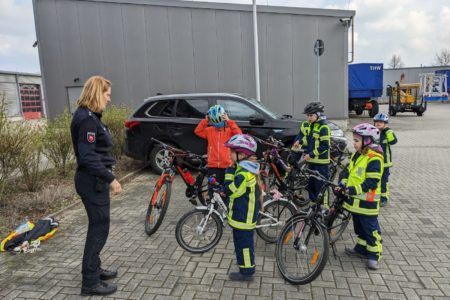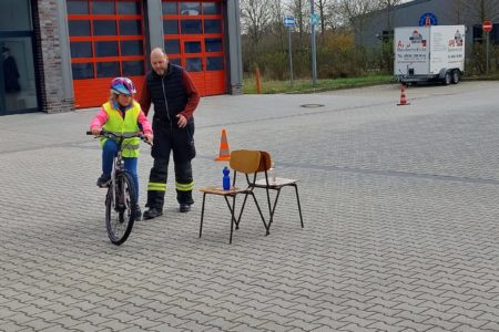 Die Kinderfeuerwehr Norden bekam kürzlich Besuch von der Polizei, aber nicht weil etwas schlimmes passiert war, sondern Frau Büchner hatte sich an diesem Nachmittag etwas ganz tolles für den Nachwuchs ausgedacht. So wurden die Kindern in zwei Gruppen aufgeteilt. Eine Gruppe absolvierte einen Parcours. Beim Parcours ging es darum mit dem mitgebrachten Fahrrad einen Parcours zu fahren, es galt es Slalom zu fahren, an einem Stopp-Schild zu stoppen, drei Sekunden zu warten und weiterfahren. An der Hallenseite angekommen, galt es ebenfalls zu warten, nach links und rechts zu schauen und weiter zu fahren.