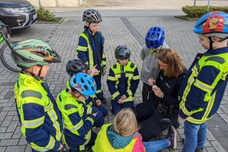 Die andere Gruppe erfuhr eine ganze Menge darüber, welche Funktionen Warnwesten und Helme haben. Des Weiteren wurden die Fahrräder auf ihre Fahrsicherheit überprüft.
