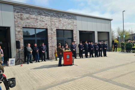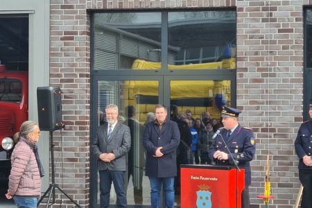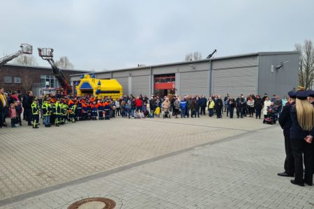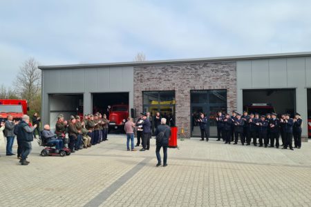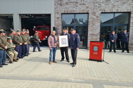Am Samstag war es endlich so weit. Die neu errichtetet Mehrzweckhalle auf dem Gelände des Hilfeleistungszentrums in der Osterstraße wurde durch Bürgermeister Florian Eiben an Stadtbrandmeister Thomas Kettler sowie den Oldie-Kommandant Willhelm Schmeding übergeben. Die Mehrzweckhalle ist das neue „Zuhause“ der Oldie-Kameraden, welche über 25 Jahre in den Hallen der Firma Popken unentgeltlich untergebracht waren und dort die Fahrzeuge liebevoll restaurierten. Hierfür bedankten sich alle sehr herzlich bei Dirk Bünting (Fa. Popken) und seiner Familie. Als Besonderheit erhielt er die Abschrift einer Dankesurkunde, welche im Original in der Zeitkapsel im Fundament des Neubaus schlummert.