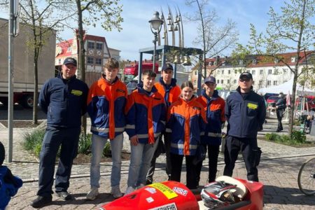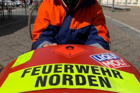 Das vergangene verlängerte Wochenende verbrachte eine Gruppe Jugendlicher unserer Jugendfeuerwehr in Pasewalk, der Partnerstadt Nordens. Diese lud nämlich zu ihrem 17.Seifenkistenrennen ein. Am Samstag brachen die insgesamt 5 Jugendlichen zusammen mit 2 Betreuen und einer der beiden Seifenkisten der Jugendfeuerwehr am Hilfeleistungszentrum auf. Nach acht Stunden, 450 Kilometer und einigen Pausen später kam die Gruppe um ca. 17.30 Uhr am Feuerwehrhaus der Freiwilligen Feuerwehr Pasewalk an. Nach einer herzlichen Begrüßung und Bekanntmachung mit den anwesenden Mitgliedern der Einsatz- und der Jugendabteilung der Freiwilligen Feuerwehr Pasewalk bezogen unsere Jugendlichen auch schon ihre Feldbetten und verbrachten einen gemeinsamen Abend inklusive Führung durch das Feuerwehrgebäude und die Fahrzeughallen. Am Sonntag wurde dann gemeinsam im Seniorenzentrum CURA gefrühstückt. Am Vormittag brachen unsere Jugendlichen zusammen mit den Pasewalkern auf, dieser Tagesausflug beinhaltete bei fabelhaftem Wetter unter anderem ein Besuch des DDR-Museums Dargen/Usedom, ein Abstecher auf die Seebrücke Koserow und ein Besuch des Karsl-Erlebnis-Dorfes. Am Abend wurden dann noch letzte Optimierungen an unserer Seifenkiste gemacht und ein gemeinsamer Abend am Feuerkorb mit Spielen und Stockbrot verbracht. Ebenfalls überreichten wir den Pasewalkern noch ein kleines Dankeschön, eine Jugendfeuerwehr-LED-Lampe, die mit dem Niedersächsischen Wappen gekennzeichnet ist. Auch unsere Jugendlichen erhielten ein Geschenk der Pasewalker, nämlich ein JF-T-Shirt der Freiwilligen Feuerwehr Pasewalk als Andenken mit, bevor es dann am Montag zum Seifenkistenrennen gehen sollte. Unsere Jugendfeuerwehr belegte am Montag dann mit unserer im Jahre 1976 erbauten Seifenkiste den 12. Platz. Anschließend gab es für die Jugendlichen noch ein letztes Eis bevor es Abschied nehmen hieß und die lange Rückreise angetreten wurde. Doch auch in Zukunft sollen die guten Beziehungen zu unserer Partnerfeuerwehr Pasewalk erhalten bleiben. Die Rückreise bewältigten unsere Jugendlichen natürlich auch und kamen dann am Montagabend gegen 22.30 Uhr am Hilfeleistungszentrum in Norden wieder an.
