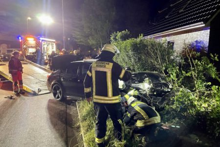 In der Nacht zu Donnerstag ereignete sich in der Norder Innenstadt ein Verkehrsunfall in der Osterstraße. Ein Pkw kam dabei in einem Vorgarten zum Stehen. Der Fahrer kam gegen Mitternacht aus der Straße im Horst. In der Einmündung zur Osterstraße verlor er die Kontrolle über seinen Wagen und durchbrach eine Hecke. Der Fahrer blieb bei dem Unfall unverletzt. Da der Wagen zu qualmen begann, riefen Passanten die Freiwillige Feuerwehr Norden. Ein Feuer konnten die Einsatzkräfte jedoch nicht feststellen. Dafür mussten sie sich jedoch um auslaufende Betriebsstoffe kümmern. Die Polizei nahm den Unfall auf. Ein Abschleppunternehmen übernahm die Bergung des BMW.