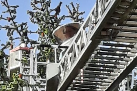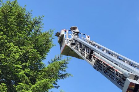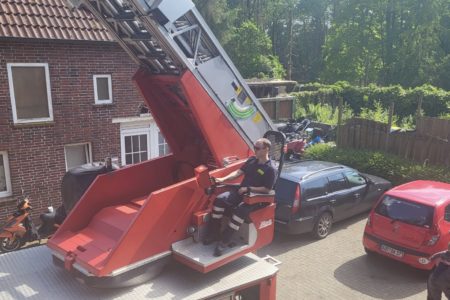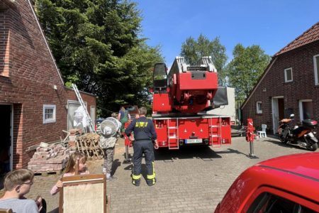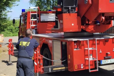 Mit einem seltenen Hilfeersuchen wandte sich am Pfingstsonntag eine Imkerin an die Freiwillige Feuerwehr Norden. Eines ihrer Bienenschwärme hatte sich auf ihrem Grundstück in Südarle in eine Hohe Tanne geflüchtet. Die Imkerin hatte bereits mit ihrem Mann versucht die Tiere mit einer Leiter und Kletterausrüstung zu erreichen. Doch das Volk saß in 15 Metern Höhe für sie unerreichbar hoch. Ohne die Tiere einzufangen und in einen Bienenstock umzusiedeln, wären sie verendet.