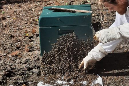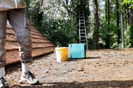 Nach Rücksprache mit der örtlich zuständigen Gemeindefeuerwehr Großheide rückte die Norder Feuerwehr am Nachmittag mit einer ihrer beiden Drehleitern nach Südarle aus. Die Bienenzüchterin fuhr in Imkerschutzkleidung im Drehleiterkorb hoch und sicherte die Bienen in einem großen Eimer. Am Boden besiedelten die unter Naturschutz stehenden Tiere gleich einen bereitstehenden neuen Bienenstock.