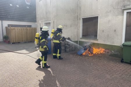 Auf einem Hinterhof in der Norder Innenstadt hat am Montagnachmittag eine Altpapiertonne gebrannt. Gegen 17.20 Uhr hatten Anwohner der Uffenstraße das Feuer bemerkt und einen Notruf abgesetzt. Die Mülltonne brannte direkt an einem unbewohnten Gebäude. Einsatzkräfte der Freiwilligen Feuerwehr Norden konnten den Brand zügig löschen.