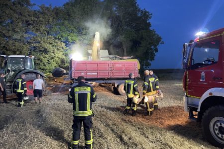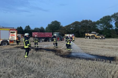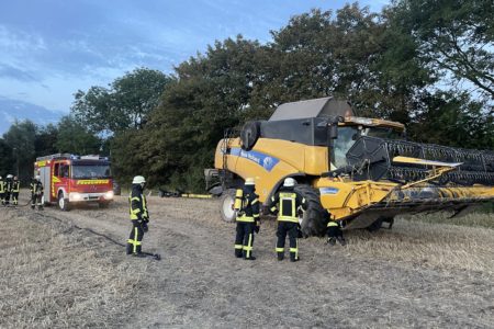 Bei Erntearbeiten ist am späten Montagabend in Norden ein Mähdrescher heiß gelaufen. Der Fahrer bemerkte zunächst ein Problem an dem Fahrzeug und hielt an. Dabei entdeckte er einen kleinen Entstehungsbrand an der Unterseite des Mähdreschers sowie brennendes Stroh auf dem Feld. Eine Erntehelferin setzte sofort einen Notruf ab und forderte die Feuerwehr an. Der Landwirt konnte währenddessen die kleinen Flammen mit Mineralwasser löschen.