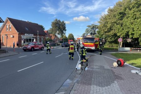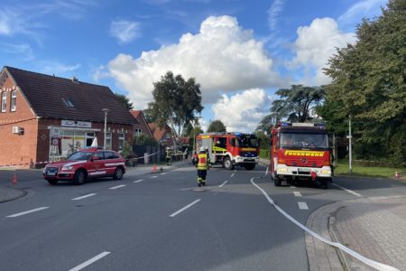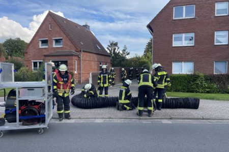 In einem Norder Mehrparteienhaus in der Osterstraße ist am Montag Erdgas ausgetreten. Hausbewohner hatten gegen 17.50 Uhr starken Gasgeruch bemerkt und die Feuerwehr gerufen. Vor dem Gebäude wartete ein Mieter des Hauses auf die Einsatzkräfte. In seiner Wohnung befand sich das Leck im Bereich der Heizungsanlage. Er hatte das Gas eingeatmet und wurde in die Norder Klinik unweit der Einsatzstelle eingeliefert. Als Atemschutzgeräteträger die Wohnung betraten, schlugen deren Messgeräte sofort Alarm und signalisierten Explosionsgefahr. Die Feuerwehrleute öffneten schnell ein paar Fenster und sperrten die Gasleitung im Keller ab. Wegen der Explosionsgefahr mussten das Gebäude, sowie zwei Nachbargebäude von Feuerwehr und Polizei evakuiert werden. Auch die Osterstraße wurde in dem Bereich für zirka eine Stunde voll gesperrt.