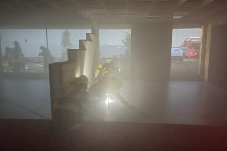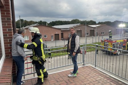 Das ehemalige Möbelhaus Pflüger in der Gewerbestraße in Norden war am Dienstagabend Schauplatz einer großen Übung der Freiwilligen Feuerwehr Norden. Die früher als Verkaufsräume genutzten Hallen, boten besonders für Atemschutzgeräteträger hervorragende Übungsbedingungen. Sie konnten dort das Eindringen in tiefe Gebäude mit intensiver Verrauchung üben. Verschiedene Suchtechniken zum Auffinden von Vermissten samt Koordination gehörten ebenso zu den Aufgaben. Neben Übungspuppen, Diskonebel, Blitzlampen und lautstarken Hintergrundgeräuschen stellten auch zwei Statisten die Feuerwehrleute auf die Probe. Die beiden erwachsenen Männer hatten die Aufgabe, die Einsatzkräfte zu stressen und die dargestellten Rettungsaufgaben mit gespielter Angst, Panik und Aggressionen zu erschweren. Erst in der Nacht zuvor, als die Norder Feuerwehr 39 Menschen bei einem Kellerbrand retten mussten, erlebten die Feuerwehrleute live, wie unterschiedlich Menschen in solchen extremen Notsituationen reagieren. Ruhe und Kooperation sind nicht immer selbstverständlich, auch nicht wenn das eigene Leben in Gefahr ist.