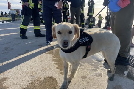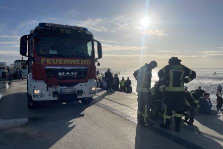 Eine Hündin ist am Donnerstagnachmittag an der Wasserkante in Norddeich in Not geraten. Als sie mit ihren Besitzern an einer Duschstation stand, erschreckte sie sich und machte eine ruckartige Bewegung. Dabei geriet eine Vorderpfote in ein Abwassergitter und steckte darauf fest. Da die Besitzer ihr Tier nicht selbst befreien konnten, riefen sie die Freiwillige Feuerwehr Norden zur Hilfe.