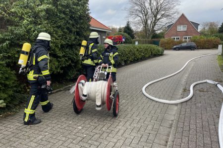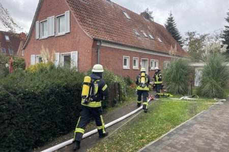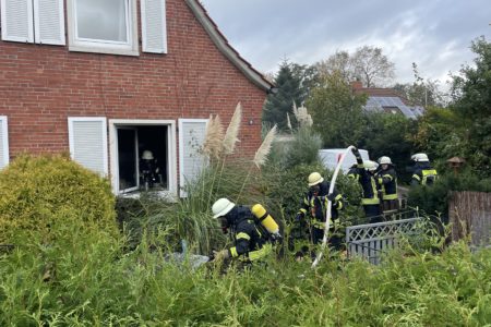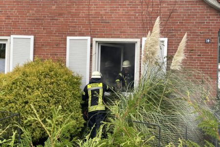 So gingen insgesamt drei Trupps unter Atemschutz zur Tierrettung und Brandbekämpfung in die verrauchte Haushälfte vor. Das Feuer konnten die Feuerwehrleute schnell löschen und auch die Katze wurde wohlbehalten auf der Terrasse entdeckt und der Besitzerin übergeben. Abschließend entrauchte die Feuerwehr das Gebäude. Die Hausbewohner wurden vom Rettungsdienst gesichtet. Verletzt wurden sie jedoch nicht. Aufgrund der Schäden in der Küche, schaltete der Bereitschaftsdienst der Norder Stadtwerke die Stromversorgung in der Haushälfte ab. Auch die Polizei war in die Straße Zur Alten Mühle ausgerückt und hat den Vorfall aufgenommen.