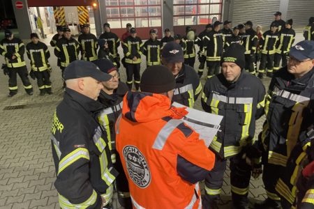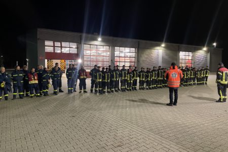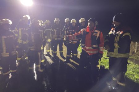 Der erforderliche Personaleinsatz war dann auch Thema in einer kurzen Nachbesprechung. Stadtbrandmeister Thomas Kettler machte deutlich, dass bei derartigen Ereignissen die regionalen Kräfte schnell erschöpft und ausgekühlt sind und auch nicht ausreichen werden. Schnell müsste daher über den Landkreis Aurich und das Land Niedersachsen Hilfe aus weiter Entfernung angefordert werden. Dann würden Kreisfeuerwehrbereitschaften (quasi Feuerwehrhundertschaften) sowie THW-Facheinheiten mit entsprechenden Fähigkeiten anrücken. Aus diesem Grund nahmen auch Führungskräfte der Kreisfeuerwehrbereitschaft Aurich-Nord als Beobachter zum Erfahrungsaustausch an der Übung teil.