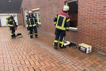 Im Norder Ortsteil Leybuchtpolder ist am Mittwochmittag ein Zimmerbrand gemeldet worden. Laut dem eingegangen Notruf sollte, es in einem Einfamilienhaus in einem Vorratsraum brennen. Bei Ankunft der Freiwilligen Feuerwehr Norden von den Standorten Leybuchtpolder und Hilfeleistungszentrum, war das Gebäude in der Karl-Wenholt-Straße im Erdgeschoss teilweise verraucht. Die Einsatzkräfte gingen daher unter Atemschutz vor und stießen in dem Vorratsraum auf eine brennende Mikrowelle. Das Gerät brachten sie ins Freie. Offenbar hatte die Hausbewohnerin ein Körnerkissen darin so stark erhitzt, dass es Feuer fing. Nachdem die Feuerwehr das Gebäude belüftet hatte, rückte sie wieder ab. Die Bewohnerin kam mit dem Schrecken davon.