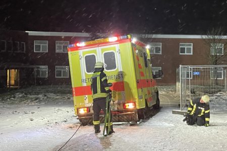 Ein kleiner Wintereinbruch hat am frühen Montagmorgen einen Rettungswagen in Norddeich in eine festgefahrene Situation gebracht. Auf einer Grundstückszufahrt war die befestigte Fläche wegen des Schnees nicht mehr zu erkennen. Die Fahrerin des Rettungswagens kam darauf mit ihrem Fahrzeug im Dunkeln auf eine weiche Rasenfläche und fuhr sich fest. Die Freiwillige Feuerwehr Norden rückte an und zog das Fahrzeug mit einer Seilwinde wieder auf festen Boden.
