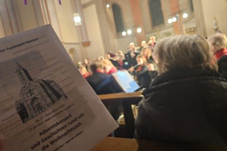 Am 3. Advent veranstaltete das Stadtorchester Feuerwehr Norden sein schon fast traditionelles Adventskonzert in der Katholischen Kirche St. Ludgerus. Neben weihnachtlichen Klängen des Stadtorchesters unter der Leitung von Sven Neumann gab es in der vollbesetzten Kirche auch kleine Geschichten rund um die Weihnachtszeit erzählt von Wolfhard Schoen.