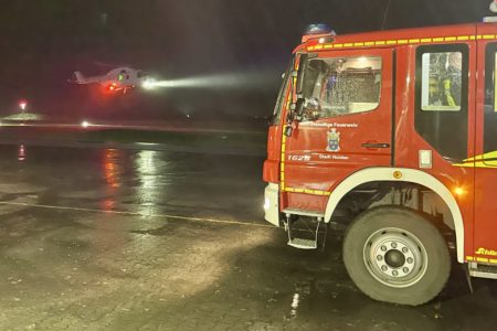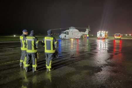 Schlechtes Wetter hat am Sonnabend erneut die Abwicklung eines Luftrettungseinsatz der Marineflieger am Flugplatz Norden-Norddeich erforderlich gemacht. Die Marine brachte gegen 19 Uhr mit einem ihrer NH-90 Sea Lion-Hubschrauber eine Patientin von der Insel Borkum zum Festland. Die Freiwillige Feuerwehr Norden sorgte dort für ausreichend Beleuchtung und stellte den Brandschutz sicher. Rettungsdienst samt Notarzt übernahmen die Patienten und brachten sie in ein Krankenhaus.