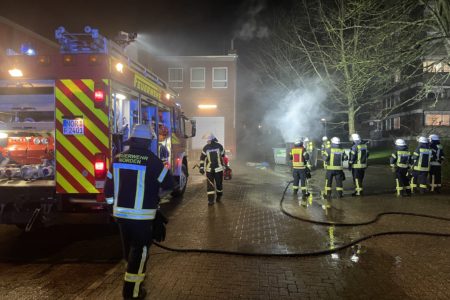 Ein größerer Müllcontainer hat in der Nacht zu Sonnabend in Norden im Warenanlieferungsbereich eines Supermarktes gebrannt. Um kurz vor Mitternacht hatte eine Autofahrerin den Brand in der Pottbackerslohne entdeckt und per Notruf gemeldet. Die alarmierte Freiwillige Feuerwehr Norden löschte den Gewerbemüll, in dem sie den 2.500 Liter fassenden Stahlbehälter mit Wasser flutete. Die Polizei hat den Vorfall aufgenommen.