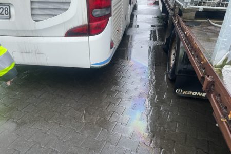 Die Feuerwehr ergänzte die Abdichtmaßnahmen an mehreren Stellen und sicherte die Gefahrenbereiche gegen den Verkehr ab. Auf dem Gewässer wurden mehrere saugfähige Ölsperren ausgelegt. Das Verursacherfahrzeug entdeckten die Einsatzkräfte abgestellt auf einem Firmengelände. Das verantwortliche Busunternehmen beauftragte eine Fachfirma mit der umgehenden Reinigung der verschmutzten Flächen. Nachdem eine weitere Ausbreitung verhindert war, übergab die Feuerwehr die Einsatzstelle an die Polizei sowie den Baubetriebshof der Stadt Norden. Die Bergung und Entsorgung der Ölsperren aus dem Gewässer erfolgen in den nächsten Tagen, wenn sie den Kraftstoff vollständig aufgenommen haben.
