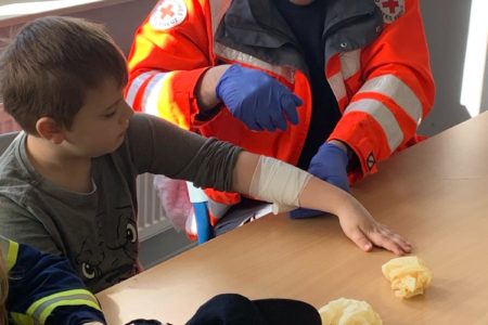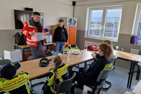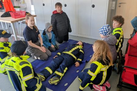 Am vergangenen Samstag hatten die Jüngsten in der Feuerwehr Norden Besuch vom Deutschen Roten Kreuz aus Hage. Zwei Bereitschaftsmitglieder, zwei Gruppenleiter für das Jugendrotkreuz und zwei Kinder vom Jugendrotkreuz waren nach Norden gekommen um den Löschzwergen ein paar wichtige Themen rund um die Erste Hilfe zu vermitteln. Erste Hilfe findet jedes Jahr bei der Kinderfeuerwehr statt. Jeden Tag können die Kinder in Situationen kommen, in der sie eventuell Erste Hilfe anwenden müssen. Sei es zu Hause, beim Dienst, unterwegs mit Freunden oder in der Schule. Erste Hilfe ist auch ein fester Bestandteil bei der Brandflohabnahme. Die Brandflohabnahme ist quasi die erste Auszeichnung für die Mitglieder in der Kinderfeuerwehr.