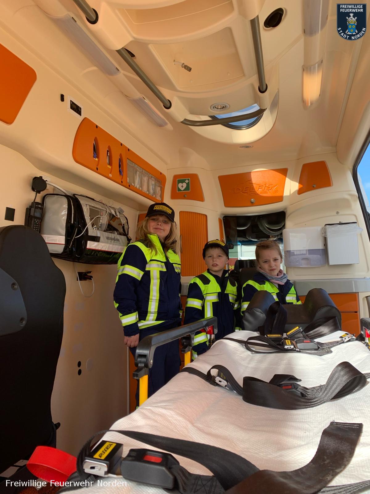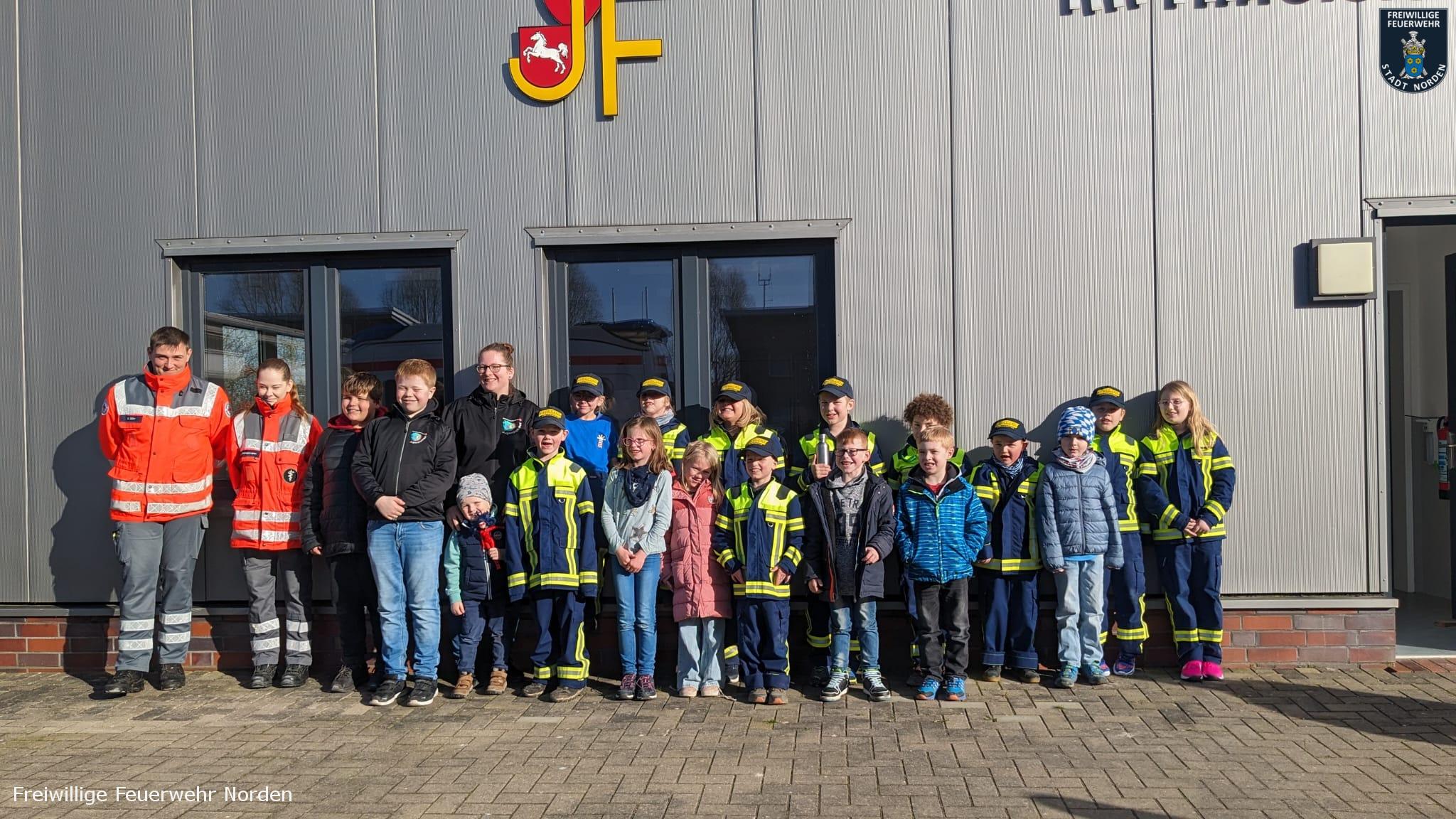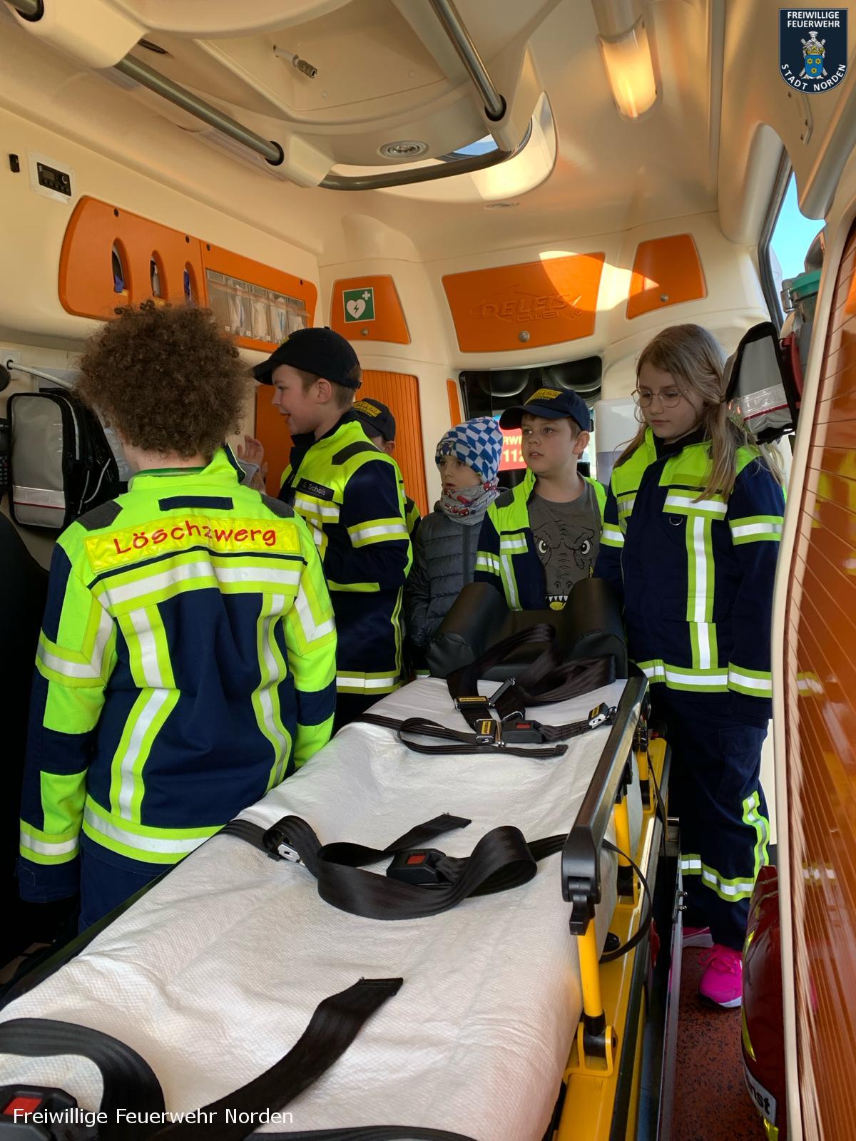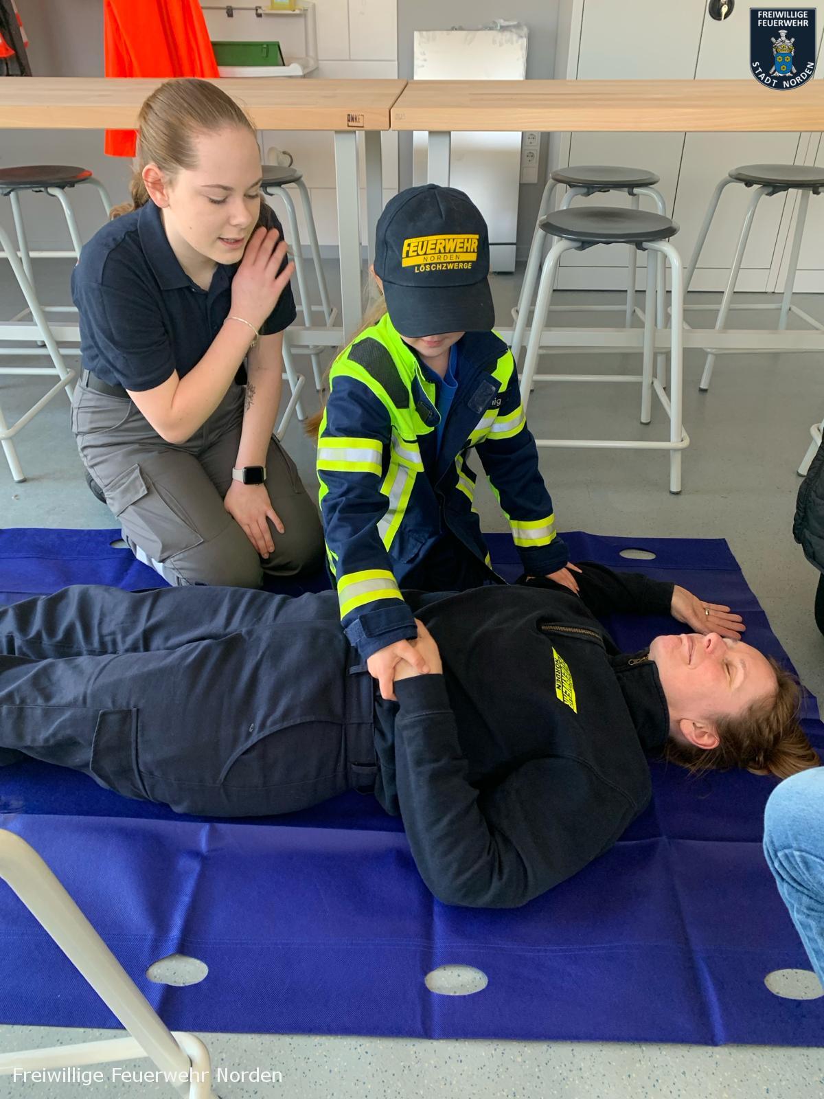 Am vergangenen Samstag hatten die Jüngsten in der Feuerwehr Norden Besuch vom Deutschen Roten Kreuz aus Hage. Zwei Bereitschaftsmitglieder, zwei Gruppenleiter für das Jugendrotkreuz und zwei Kinder vom Jugendrotkreuz waren nach Norden gekommen um den Löschzwergen ein paar wichtige Themen rund um die Erste Hilfe zu vermitteln. Erste Hilfe findet jedes Jahr bei der Kinderfeuerwehr statt. Jeden Tag können die Kinder in Situationen kommen, in der sie eventuell Erste Hilfe anwenden müssen. Sei es zu Hause, beim Dienst, unterwegs mit Freunden oder in der Schule. Erste Hilfe ist auch ein fester Bestandteil bei der Brandflohabnahme. Die Brandflohabnahme ist quasi die erste Auszeichnung für die Mitglieder in der Kinderfeuerwehr.