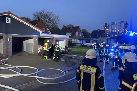 Am frühen Sonntagmorgen hat im Norder Ortsteil Bargebur eine Garage gebrannt. Gegen 5.45 Uhr hatten Anwohner der Heffdammstraße den Brand in der Nachbarschaft bemerkt. Aus einem Gebäude mit insgesamt fünf Garagen drang dichter Rauch. Als Einsatzkräfte der Freiwilligen Feuerwehr Norden das Tor öffneten, wurden Flammen im Inneren sichtbar. Atemschutzgeräteträger konnten den Brand schnell löschen. Das eingelagerte Inventar erlitt erheblichen Schaden. Die Polizei hat die Ermittlungen zur Brandursache aufgenommen.