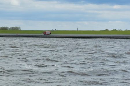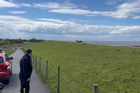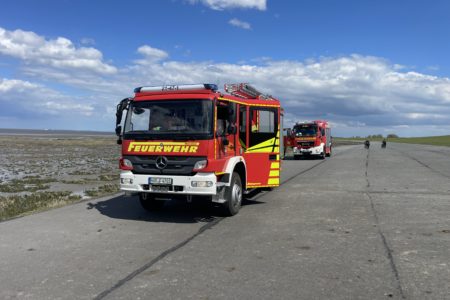 Die Einsatzkräfte konnten das Reh dann nach etwas Suche mit Ferngläsern zirka 350 Meter vom Deich entfernt im Wasser stehend ausfindig machen. Schnell war auch klar, warum das Wildtier sich nicht zurück an Land traute. Unzählige Menschen nutzten das schöne Wetter für einen Spaziergang oder eine Radtour entlang der Nordsee. Für das scheue Tier gab es somit keine Chance in Ruhe den Deich zu überqueren. In Absprache mit einem Wattenjagdaufseher sperrte die Feuerwehr zunächst einen rund 700 Meter langen Deichabschnitt ab und zog sich selbst vom Deich zurück. Schnell bemerkte das Reh, dass der Weg plötzlich frei war und lief in Richtung Festland.