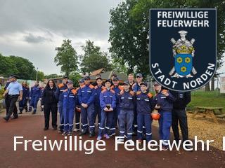 Vergangenen Sonnabend fand in der Gemeinde Ihlow der diesjährige Kreisentscheid im Bundeswettbewerb der Jugendfeuerwehren aus Ostfriesland statt. Rund 33 Gruppen traten hier in einem 400 Meter Staffellauf und einem Löschangriff nach Feuerwehrdienstvorschrift (FwDV) 3 gegeneinander an. Die Jugendfeuerwehr Norden belegte am Ende mit rund 1332 von 1400 Punkten den 8. Platz und qualifizierte sich somit für den Bezirksausscheid, der am 9. Juni in der Gemeinde Edewecht im Landkreis Ammerland stattfindet. Insgesamt qualifizierten sich rund 12 Jugendfeuerwehren aus den Landkreisen Aurich, Leer, Wittmund und der Stadt Emden für den Bezirksentscheid. Hierbei haben die Jugendfeuerwehren die Chance sich für den Landesentscheid zu qualifizieren, dieser findet am 15. Juni in Duderstadt im Landkreis Göttingen statt.