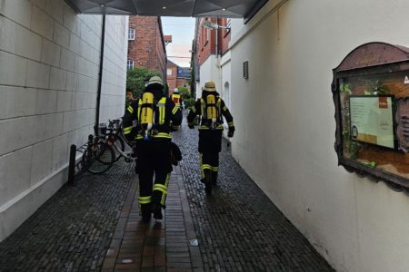 Am frühen Sonntagmorgen wurde die Feuerwehr zusammen mit dem Rettungsdienst und der Polizei in die Sielstraße gerufen. Dort bestand der Verdacht, dass ein Mann sich hilflos in seiner Wohnung befinden könnte. Auf klingeln und klopfen an der Haustür reagierte der Bewohner nicht. Als die Feuerwehrleute eine Leiter am Schlafzimmerfenster im Dachgeschoss anstellten und dort an die Scheibe klopften, wachte der Mann auf. Er war wohlauf und hatte nur tief und fest geschlafen.