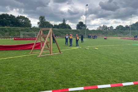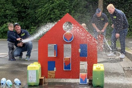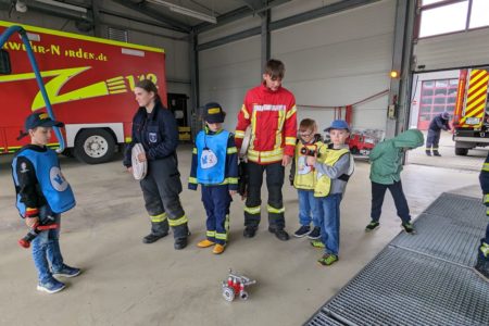 Auch die Kinderfeuerwehr traf sich am Sonnabend zum Dienstnachmittag beim Hilfeleistungszentrum. Sie beschäftigen sich ihrem Alter gerecht mit dem Aufbau eines Löschangriffs und der dazugehörigen Aufgabenverteilung innerhalb einer Löschgruppe.