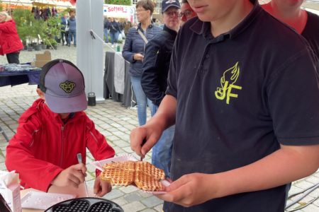 Neben dem Einsatzgeschehen hatten die Kinder- und Jugendfeuerwehr auch noch Programm. Während die Wettkampfgruppe der Jugendfeuerwehr am Sonntag beim Bezirksentscheid zum Bundeswettbewerb in Edewecht antrat, verkauften weitere Mitglieder der Nachwuchsabteilungen mit ihren Eltern und Betreuern auf dem Norder Rosenmarkt Kaffee und Kuchen.