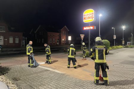 Ein defekter Mercedes SUV hat am Dienstag in Norden Diesel verloren. Die Fahrerin war gegen 23 Uhr mit dem Fahrzeug auf der Bahnhofstraße unterwegs, als plötzlich die Motorkontrollleuchte des Wagens aufleuchtete. Die Frau lenkte ihr Auto sofort auf den nächsten Parkplatz und stoppte den Motor. Daraufhin bemerkte sie, wie Kraftstoff aus dem Motorraum lief. Die Freiwillige Feuerwehr Norden rückte aus, um den von Regen verteilten Diesel mit Bindemittel abzustreuen und weiterhin austretenden Kraftstoff aufzufangen. Ein Abschleppunternehmer holte den Mercedes ab und brachte ihn in eine Werkstatt. Für die Feuerwehr war der Einsatz um kurz nach Mitternacht beendet.