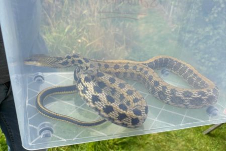 Die zunächst benachrichtigte Polizei forderte das Tierheim Emden an. Dessen Personal besitzt besondere Fachkenntnisse im Umgang solcher Tiere sowie geeignete Gerätschaften zum Einfangen. Die Norder Feuerwehr wurde um Unterstützung gebeten. Die Schlange, bei der es sich vermutlich um eine Schönnatter handelt, hatte sich zwischenzeitlich im Garten versteckt. Mit einer Drohne mit Wärmebildkamera konnte die Feuerwehr das ungiftige Reptil jedoch schnell ausfindig machen. Die Natter bemerkte jedoch das Treiben um sich und ergriff die Flucht durch einen Gartenzaun in hohes Schilfgras. Nach etwas Suche gelang es einer Tierheimmitarbeiterin die Natter dort einzufangen. Die Schlange kam in eine Transportbox und ging in die Obhut des Emder Tierheims. Wo und wem das Tier entwichen ist, ist noch unbekannt.