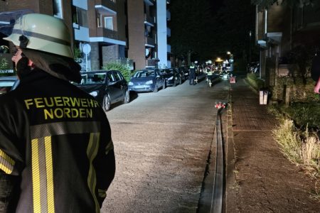 Gegen 22:50 wurden die Einsatzkräfte der Freiwilligen Feuerwehr Norden zu ihrem sechsten Einsatz am heutigen Tag gerufen. In der Kirchstraße meldeten Passanten Gasgeruch auf offener Straße. Die eintreffenden Einsatzkräfte konnten den Gasgeruch, der nach faulen Eiern roch, auch sofort wahrnehmen. Die Austrittstelle war schnell lokalisiert, ein defekter Gas-Absperrschieber in der Straße. Die Einsatzstelle wurde weiträumig abgesperrt und die Anwohner im nahen Umfeld dazu aufgefordert, sich in die Wohnungen zu begeben und den abgesperrten Bereich inklusive der Balkone nicht zu betreten. Dies stieß nicht immer auf Verständnis, in einigen Fällen ignorierten die Bewohner die Maßnahme die ihrer eigenen Sicherheit dienten. Messungen ergaben, dass nur eine Gefahr unmittelbar um die Austrittstelle bestand, da die Gaskonzentration dort sehr hoch war. Explosionsgefahr in den Gebäuden bestand nicht.