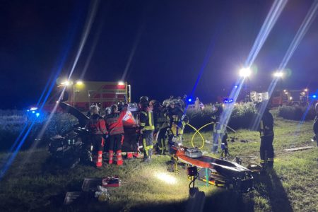 Ein Mann ist am Montag gegen 22.30 Uhr mit seinem Auto von der Westermarscher Straße (L27) in Norden abgekommen und über einen Graben auf eine Wiese geschleudert. Anschließend musste er verletzt von der Feuerwehr aus seinem Wagen befreit werden. Den deformierten Peugeot hatte ein Ersthelfer kurz nach dem Unfall auf einem Feld in Höhe der Ziegeleistraße entdeckt. Bei dem Ersthelfer handelte es sich zufällig um ein Mitglied der Feuerwehr Norden.