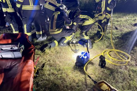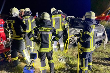 Da der alleinbeteiligte Unfallfahrer nicht eingeklemmt war, rückten zunächst nur Polizei und Rettungsdienst samt Notärztin aus. Vor Ort entschied der Rettungsdienst dann jedoch die Freiwillige Feuerwehr Norden nachzufordern, da die Verletzungssymptome des Mannes eine schonende Rettung erforderten. Die Einsatzkräfte der Norder Feuerwehr entfernten hierzu mit hydraulischem Rettungsgerät die B-Säule sowie die Hintertür der Fahrerseite und schafften so eine große Seitenöffnung. Das Unfallopfer konnte nun achsengerecht auf einem Rettungsbrett liegend aus dem Wagen gehoben werden. Anschließend kam der Mann mit einem Rettungswagen ins Emder Krankenhaus. Für die Freiwillige Feuerwehr Norden, war dies der bereits 300. Einsatz in diesem Jahr.