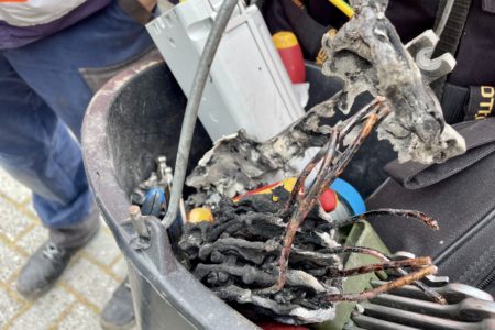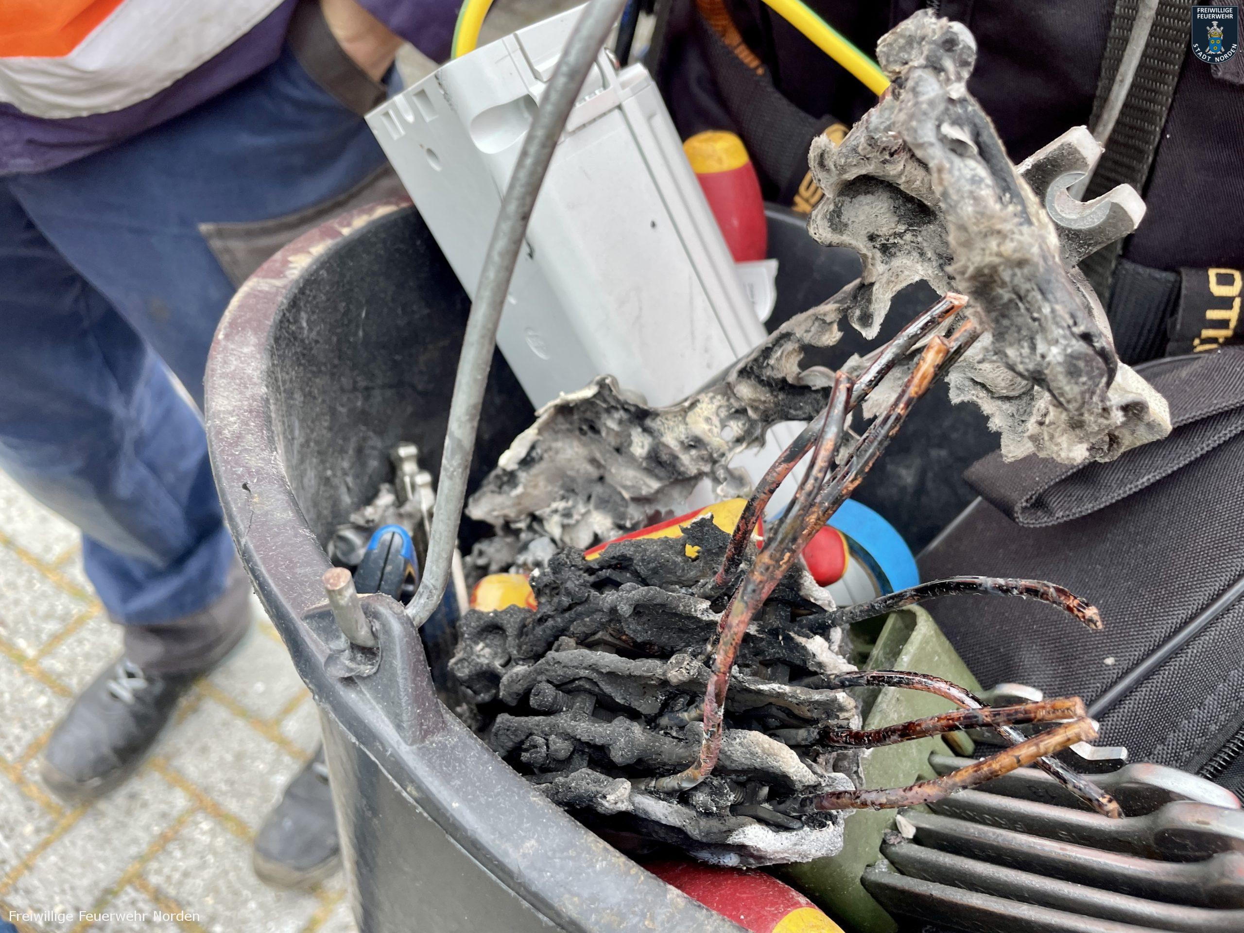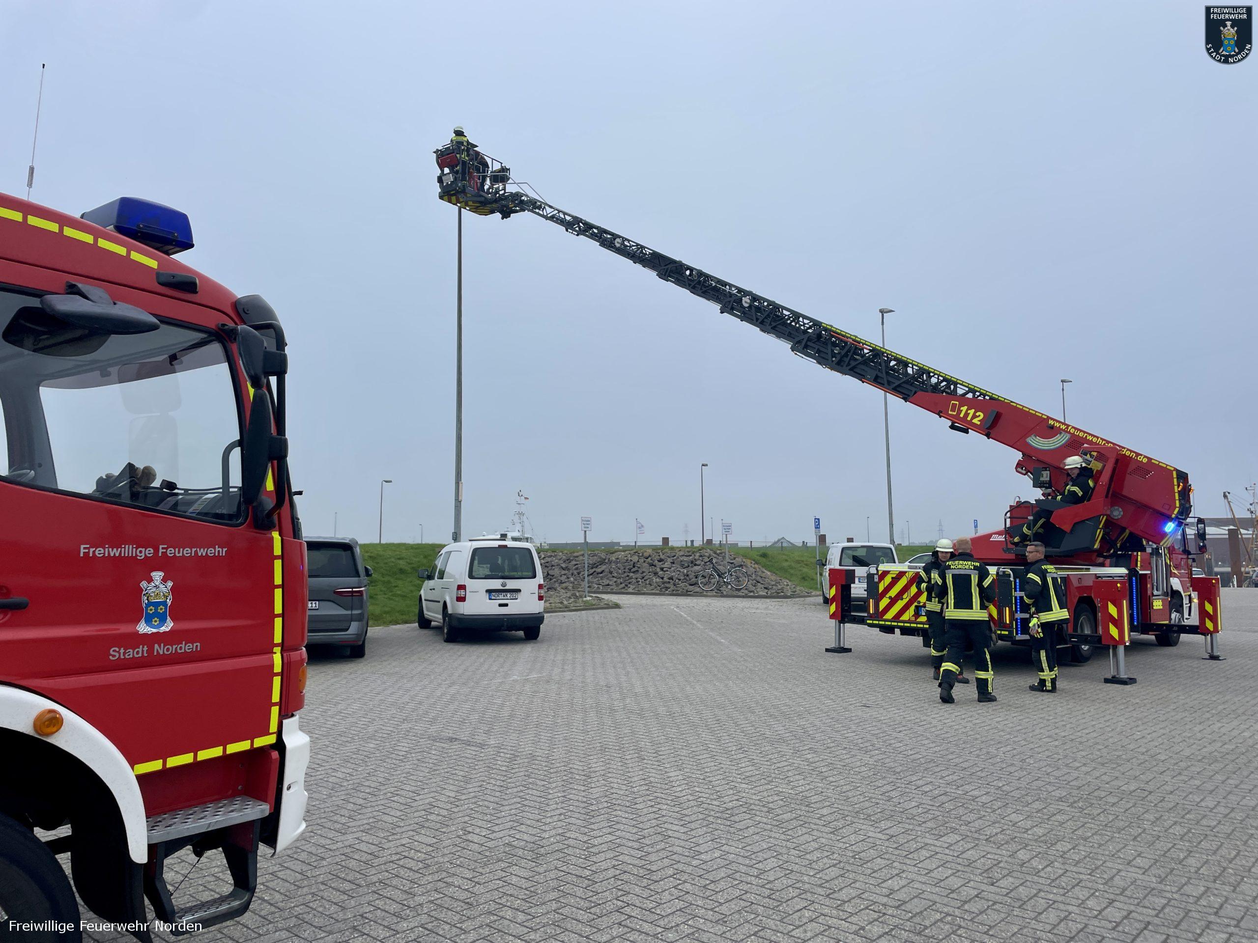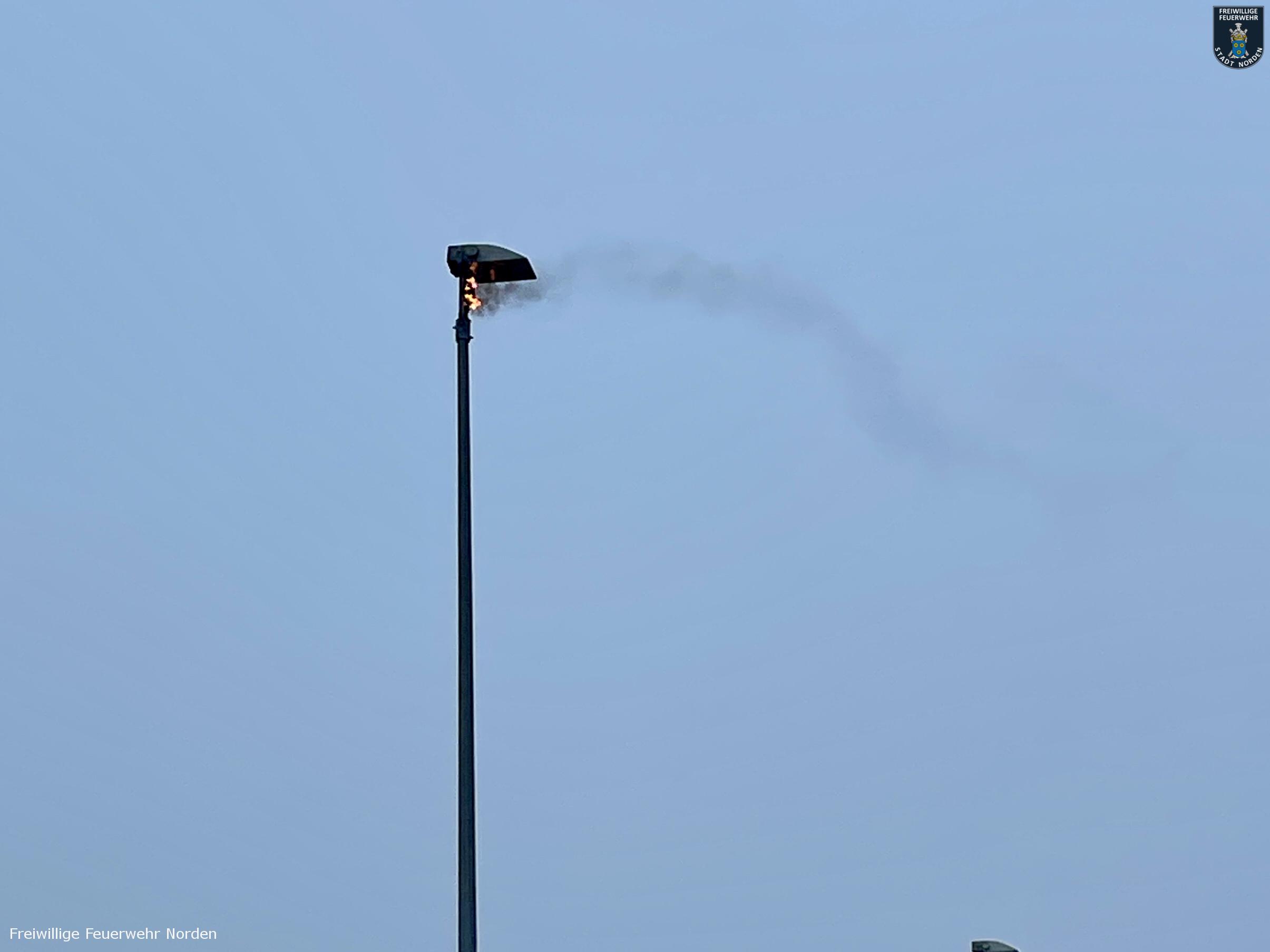Am Donnerstagmorgen ging es für die Einsatzkräfte in den Osthafen. Um 8.25 Uhr brannte dort eine Straßenlaterne. Bei Ankunft der Feuerwehr brannte der Anschlusskasten des Leuchtkopfes in zirka zehn Metern Höhe. Mitarbeiter des Hafenbetreibers NPorts schalteten die Laterne stromlos. Das Feuer erlosch wenig später von alleine. Aus dem Korb der Drehleiter wurde die Brandstelle kontrolliert und von einer Elektrofachkraft abgeklemmt.