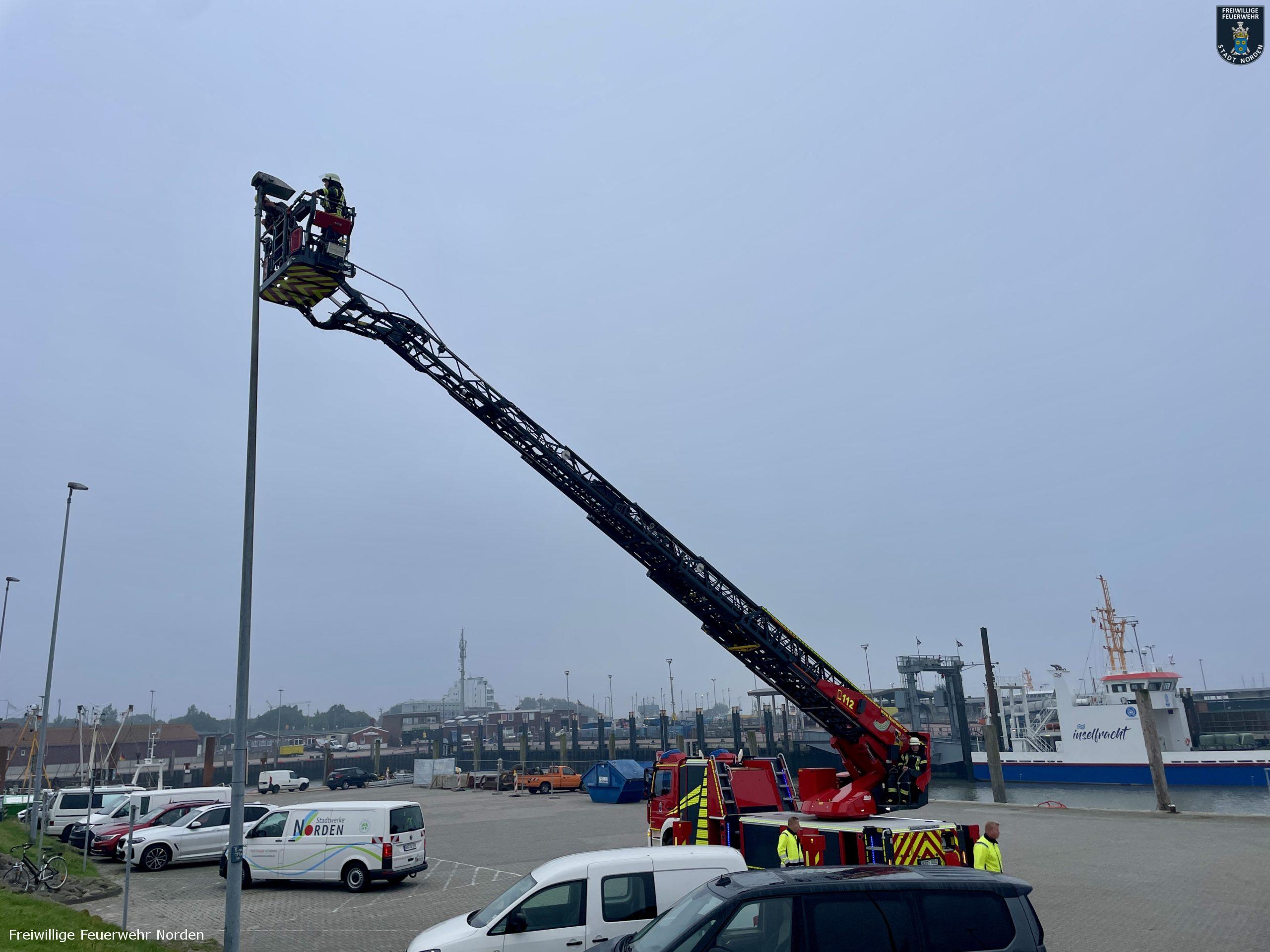 Zwei Mal nacheinander ist die Freiwillige Feuerwehr Norden am Mittwochabend und Donnerstagmorgen in den Norddeicher Hafen ausgerückt. Am Mittwoch hatten Passanten im Westhafen gegen 22.45 Uhr ein Alarmsignal auf einem Fahrgastschiff gehört. Da sie den Ton als Feueralarm deuteten wählten die Männer den Notruf und benachrichtigten die Feuerwehr. Die Einsatzkräfte begaben sich auf das Schiff und machten sich auf die Suche. Im Maschinenraum stellten die Feuerwehrleute fest, dass die Sirene lediglich aufgrund einer technischen Störung ertönte und nicht wegen eines Feueralarms. Ein hinzugerufenes Mitglied der Schiffsbesatzung übernahm die Einsatzstelle.