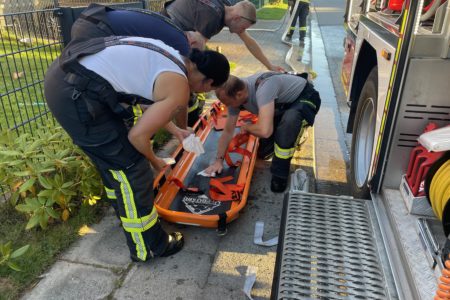 Zur Unterstützung des Rettungsdienstes ist die Freiwillige Feuerwehr Norden am Sonnabendnachmittag ausgerückt. Im Flökershauser Weg musste eine Notfallpatientin aus dem Dachgeschoss eines Reihenhauses getragen werden. Mit einer Schleifkorbtrage konnte die erforderliche Hilfe schnell geleistet werden.