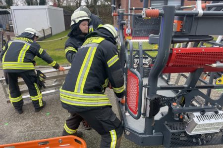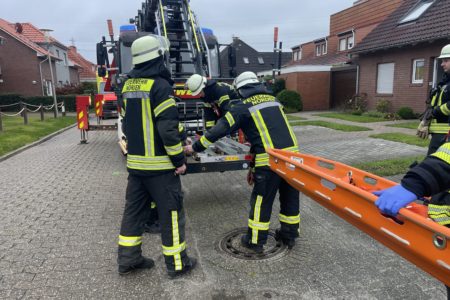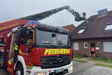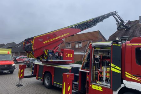 Nur zwei Zentimeter Platz blieben am Sonntag bei einem Einsatz der Freiwilligen Feuerwehr Norden in Norddeich. Die Einsatzkräfte mussten eine gehunfähige Patientin aus einem Schlafzimmer im Dachgeschoss eines Wohngebäudes transportieren. Wegen beengter Treppen führte der einzige Weg zum Rettungswagen durch ein schmales Dachfenster. Für einen sicheren Transport kam eine spezielle Trage der Feuerwehr zum Einsatz. Sie war nur zwei Zentimeter schmaler als das Fenster breit ist. Das Maß reichte jedoch aus, um die Frau auf die Tragehalterung am Korb der Drehleiter zu heben. Feuerwehr und Rettungsdienst hatten die Frau zuvor sicher in der Trage verzurrt und mit einer warmen Decke gegen Kälte geschützt. Die kniffelige Transportaufgabe war nach einer guten halben Stunde abgeschlossen. Die Frau kam anschließend in ein Krankenhaus.