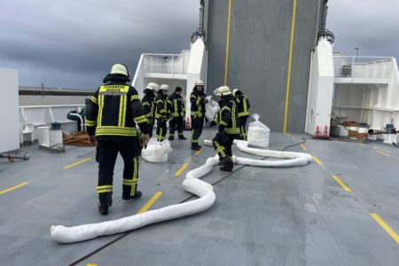 Die Einsatzkräfte befestigten saugfähige Ölsperren zwischen den Fährenden und der Kaimauer. Diese sollen das Öl aufnehmen. Die Schiffsbesatzung wird sich um die spätere Entsorgung kümmern. Neben der Feuerwehr waren auch Vertreter der Hafenbehörde, der Wasserschutzpolizei sowie des Niedersächsischen Landesbetriebes für Wasserwirtschaft und Küsten- und Naturschutz vor Ort.