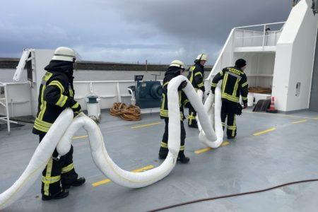 Durch einen Defekt an Bord einer Personen- und Fahrzeugfähre ist am Donnerstagmittag im Norddeicher Hafen Hydrauliköl ausgetreten. Da das Öl auch ins Hafenbecken gelangte, forderte die Schiffsbesatzung die Freiwillige Feuerwehr Norden an, um eine Ölsperre um das Schiff zu legen.