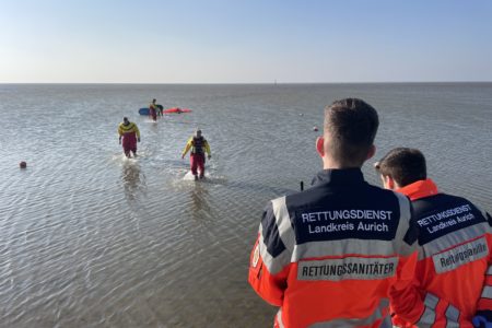 Der starke Ostwind an diesem Tag hatte das Wasser deutlich niedriger auflaufen lassen, als von dem Surfer erwartet. Zum Abschuss tauschten sich Einsatzkräfte und einer der besorgten Anrufer mit dem Mann aus Leer aus und schilderten ihre jeweilige Sicht der Dinge. Niemand war aufeinander böse, sondern zeigt Verständnis für den anderen. Schließlich hat niemand etwas Falsches getan