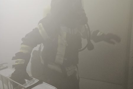 Mehrere Atemschutzgeräteträger gingen zur Menschenrettung und Brandbekämpfung in das Gebäude vor. Zeitgleich wurden Leitern und Sprungrettungsgeräte in Stellung gebracht, um die Personen aus ihrer misslichen Lage zu retten.