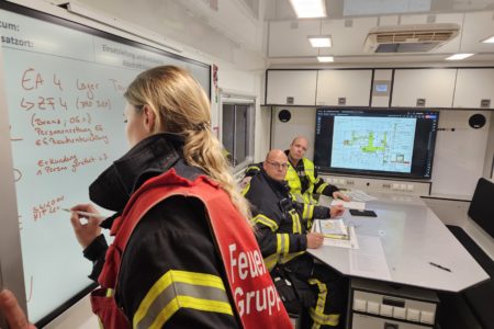 Nachdem alle Personen gerettet und das Feuer gelöscht war, gab es eine Nachbesprechung im Telematikzentrum. Die ausarbeitenden Stadtbrandmeister Thomas Kettler und der Zugführer Fokko Schuhmann zeigten sich mit dem Verlauf zufrieden. An der ein oder anderen Stelle gibt es natürlich Verbesserungspotenzial, welches in den folgenden Tagen aufgearbeitet und in die weiteren Übungsdienste einfließen wird.