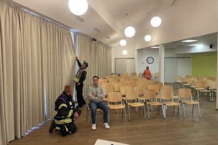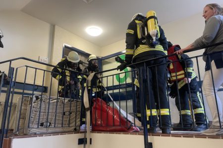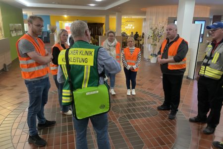 Die Übung diente nicht nur der Feuerwehr sondern auch der Klinikbelegschaft. In den letzten zwei Jahren hat die Klinik ihr Notfallmanagement weiter ausgebaut. So wurde das Evakuierungskonzept überarbeitet und eine Klinikeinsatzleitung sowie eine Notfallhelfergruppe etabliert. In einem Schadensfall will die Klinik die Einsatzkräfte und seine Patienten aktiv unterstützen und den laufenden Klinikbetrieb mit rund 270 Patienten, teilweise sogar in Begleitung von Hunden, bestmöglich aufrechterhalten. Am Dienstag haben diese beiden Gruppen erstmals zusammen mit der Feuerwehr geübt, um gegenseitig ihre Arbeitsweisen kennenzulernen und die konzipierten Abläufe durchzuspielen. Neben rund 30 Feuerwehrleuten, nahmen auch 20 Mitarbeiterinnen und Mitarbeiter aus unterschiedlichen Klinikbereichen an der Übung teil. Klinikdirektor Bernd Hamann zeigte sich sehr zufrieden mit den Abläufen, fand aber noch weitere Stellschrauben, um die Notfallkonzepte noch weiter zu verbessern.