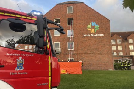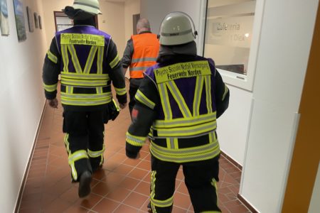 Am Dienstagabend standen für alle vier Züge der Freiwilligen Feuerwehr Norden zugweise Einsatzübungen auf dem Dienstplan. Während der 2. Zug bei der Niederdeutschen Bühne in der Kleinen Hinterlohne und der 3. Zug bei der Kreisvolkshochschule in der Zinngießerstraße zu Gast waren, übten der 1. und der 4. Zug gemeinsam in der Dr. Becker Klinik an der Badestraße in Norddeich.