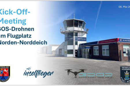 Um diese Zeit erheblich zu verkürzen und Einsatzkräften Bildmaterial vom Notfallort bereits kurz nach Alarmierung verfügbar zu machen, fand in dieser Woche am Flugplatz Norden-Norddeich ein Treffen für den Start eines innovativen Drohnenprojektes statt. Die FRISIA-Luftverkehr GmbH Norddeich, auch als die Inselflieger beziehungsweise FLN bekannt, hatten hierzu Vertreter der Kooperativen Regionalleitstelle Ostfriesland (KRLO),der Freiwilligen Feuerwehr Norden sowie den Firmen German Dynamic Drone Center (GDDC) und DroneS Control UG aus Schleswig Holstein eingeladen. Für FLN-Geschäftsführer Olaf Weddermann ist die Veränderung im Lufttransportwesen durch Drohnen mit ihren zahlreichen Einsatzmöglichkeiten, ein Weg in die Zukunft des Unternehmens. Neben Rettungs- und Ambulanzhubschraubern können zukünftig auch unbemannte Luftfahrzeuge von der jahrzehntelangen Erfahrung der Inselflieger profitieren.