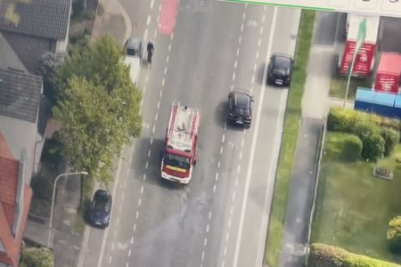 Die Begeisterung konnte wenig später mit einem echten Einsatz nochmal gesteigert und die wahre Leistungsfähigkeit unter Beweis gestellt werden. Noch während man sich über weitere Einsatzmöglichkeiten von Drohnen bei den BOS austauschte, wurde die Freiwillige Feuerwehr Norden zu einem Einsatz an der Norddeicher Straße alarmiert. In einem Wohngebäude war es zu einer Rauchentwicklung gekommen. Rauchmelder waren während es Notrufs im Hintergrund des Anrufers zu hören. Während Stadtbrandmeister Thomas Kettler direkt vom Flugplatz zum Einsatzort fuhr, folgte ihm wenig später die Drohne. Inselfliegermitarbeiter Thomas Weege und zugleich Stellvertretender Stadtbrandmeister in Norden unterstützte den Drohnenpiloten vom Flugplatz aus bei der Navigation zum Einsatzort. Auch hier konnte die Leitstelle das Livebild aus zirka 120 Metern Höhe am Bildschirm mitverfolgen. Schon kurz vor Erreichen des rund vier Kilometer entfernten Einsatzortes, war noch keine deutlich sichtbare Rauchentwicklung zu erkennen. Ein Hinweis darauf, dass der Brand sich noch in der Entstehungsphase befindet und der alarmierte Kräfteansatz ausreichend erscheint. Wäre die Rauchentwicklung schon im Anflug sichtbar gewesen, hätte man die Alarmstufe schon frühzeitig können. Vor Ort konnte die Drohne das Objekt aus verschiedenen Winkeln erkunden. Aus der Ferne konnte auch das Eintreffen des Stadtbrandmeisters sowie die Anfahrt des ersten Löschfahrzeugs mitverfolgt werden. Dies war wohl der erste Feuerwehreinsatz der Systemkombination von DJI Dock3 und der Mavic 4 in Deutschland.
