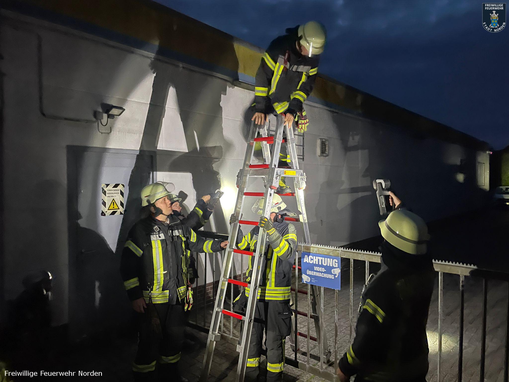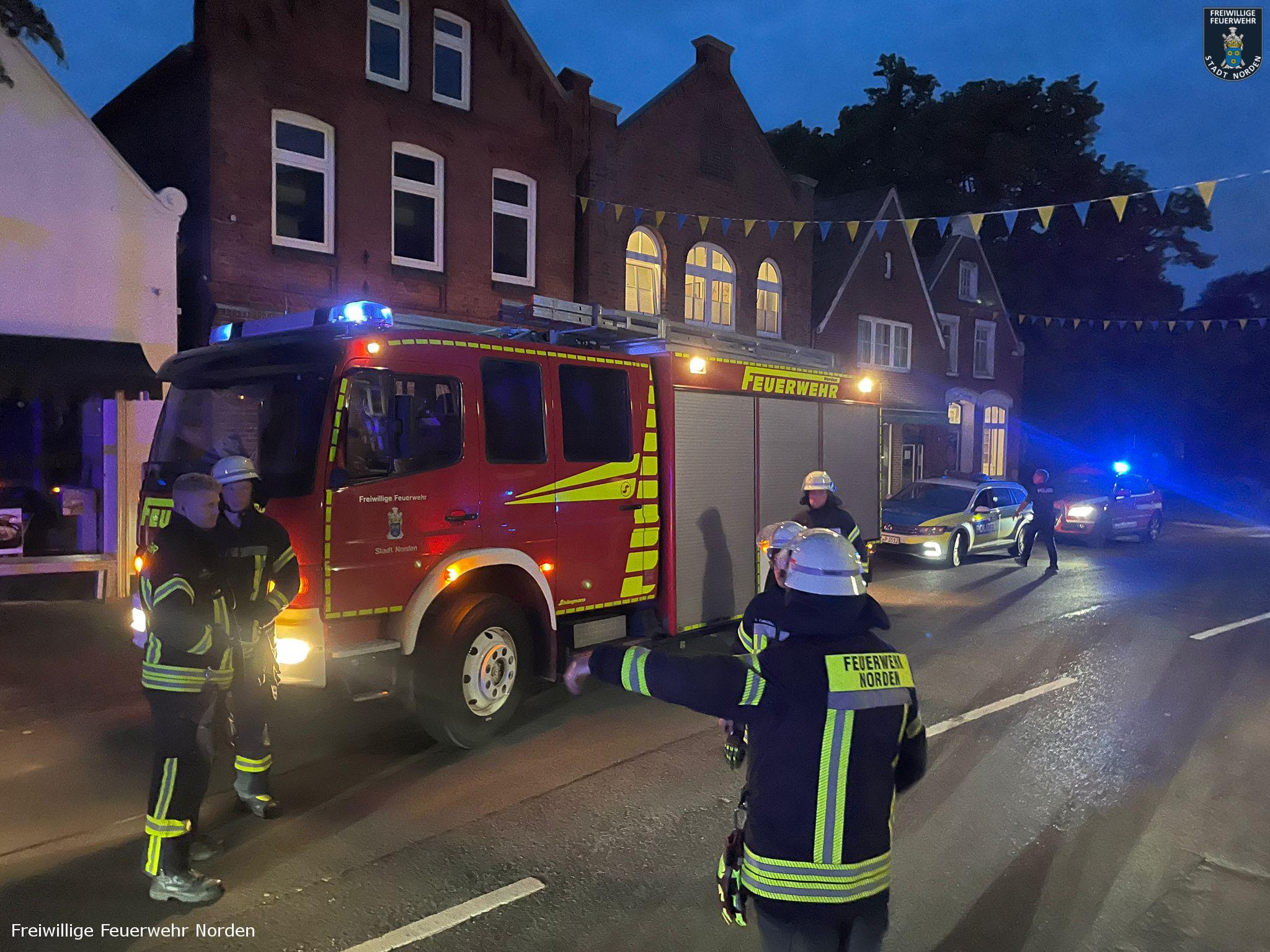 Am Mittwochabend wurde die Freiwillige Feuerwehr Norden zu einem unklaren Brand- bzw. Gasgeruch im Bereich der Westerstraße/Alleestraße alarmiert. Vor Ort konnte tatsächlich ein unklarer Geruch wahrgenommen werden, eine Örtlichkeit konnte allerdings nicht genau bestimmt werden. Da in diesem Innenstadtbereich eine Mischung aus Wohn- und Geschäftsnutzung besteht, wurden mehrere Grundstücke abgesucht. Nachdem allerdings keine weiteren Feststellungen gemacht werden konnten, wurde der Einsatz kurze Zeit später abgebrochen. Neben der Norder Wehr war ebenfalls eine Streifenwagenbesatzung der Polizei im Einsatz.