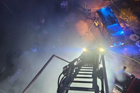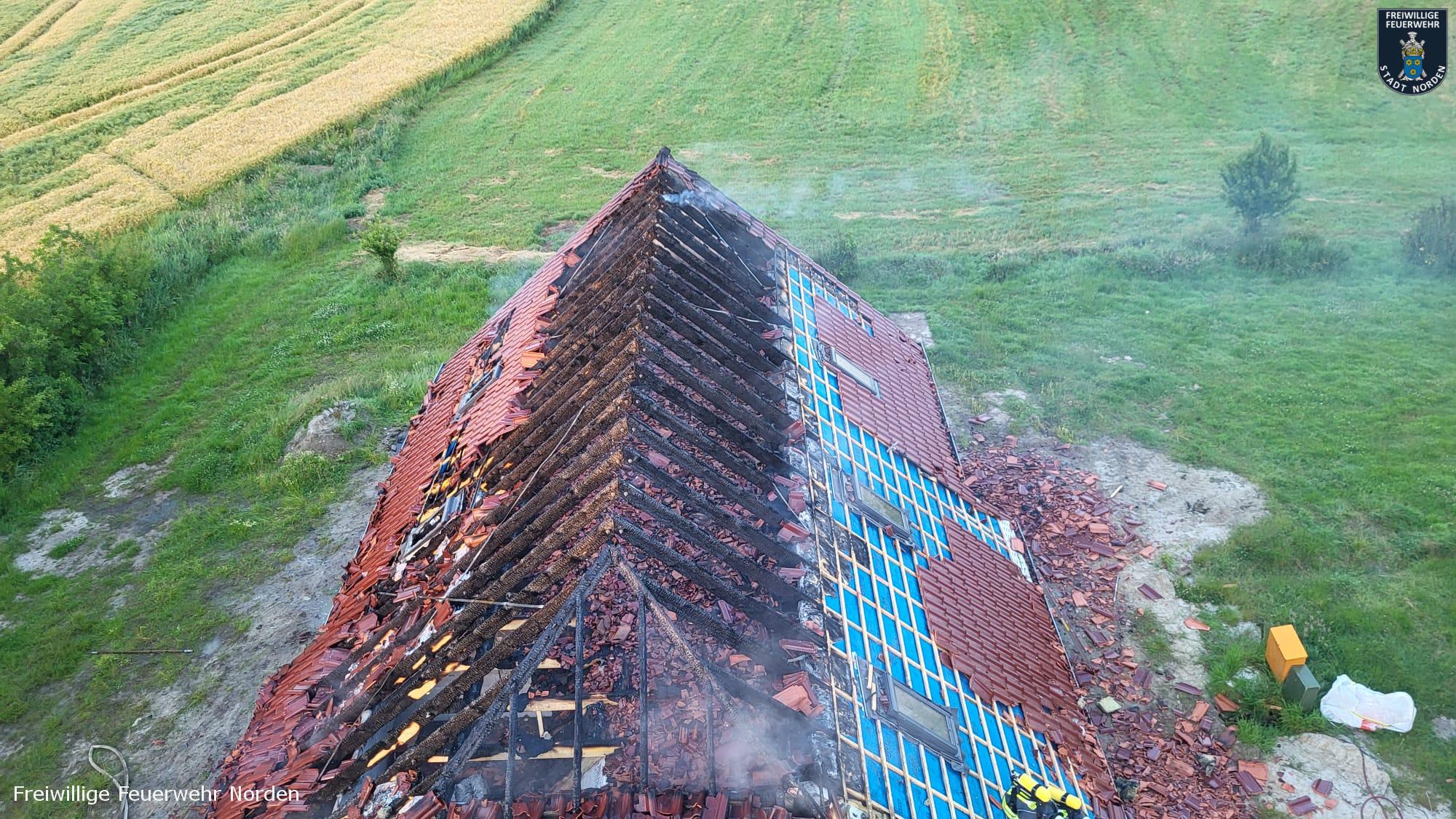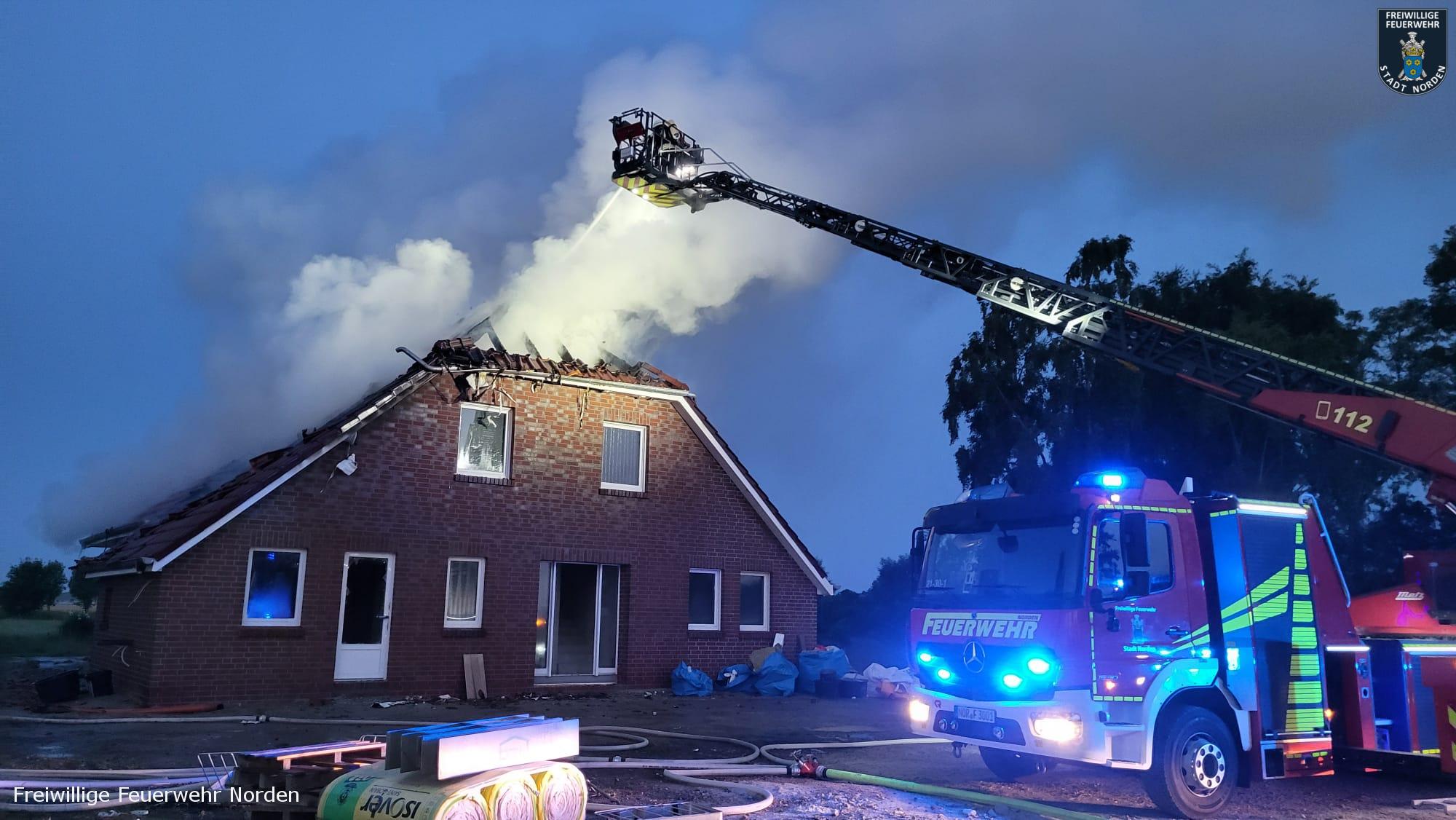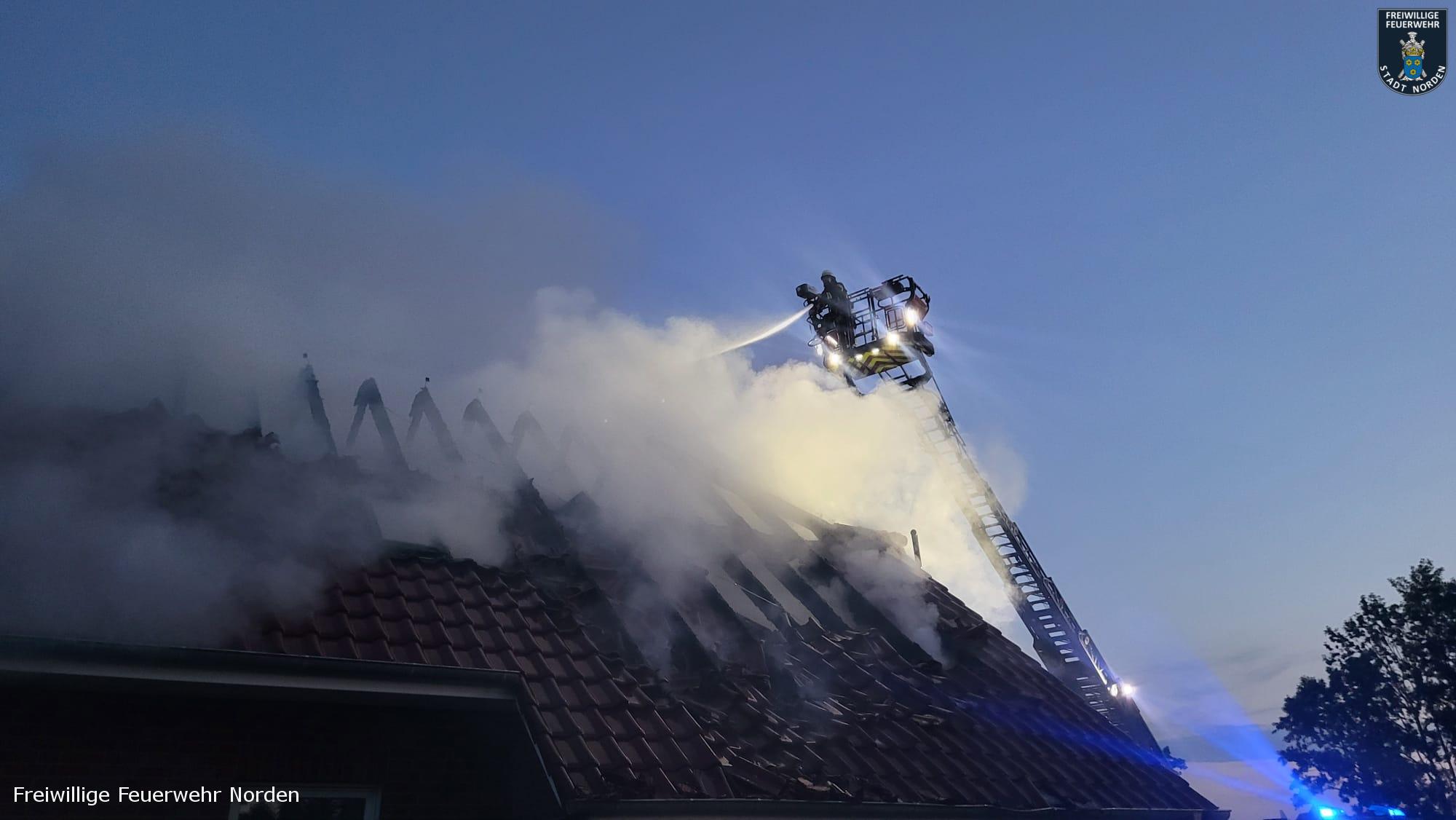Am Samstagmorgen wurde die Freiwillige Feuerwehr Norden mit mehreren Fahrzeugen zur nachbarlichen Löschhilfe in die Samtgemeinde Hage angefordert. Um 3.41 Uhr wurde die Drehleiter und ein Löschfahrtzeug alarmiert. Im weiteren Verlauf wurden um 4.02 Uhr der Schlauchwagen 2000, um 4.11 Uhr der Einsatzleitwagen 2, um 5.10 Uhr das Löschfahrzeug-Logistik mit dem Schaum-/Wasserwerfer, um 5.23 Uhr der Gerätewagen-Atemschutz und um 5.26 Uhr weitere Atemschutzgeräteträger nachgefordert.
